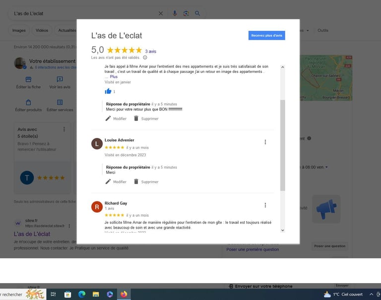 Je sollicite Mme Amar de manière régulière pour l'entretien de mon gîte : le travail est toujours réalisé avec beaucoup de soin et avec une grande réactivité.